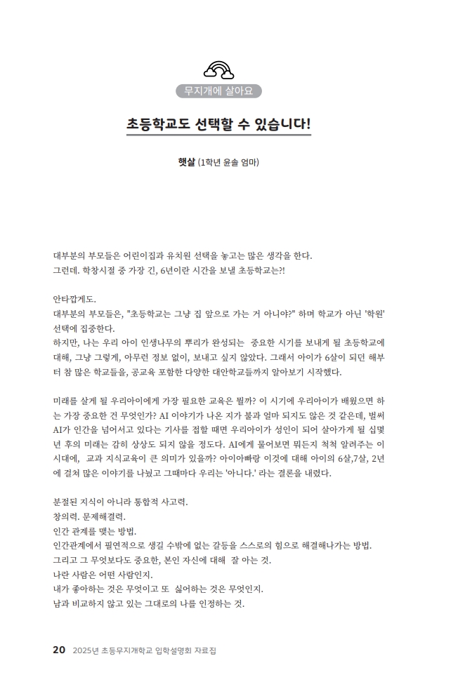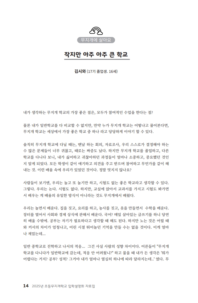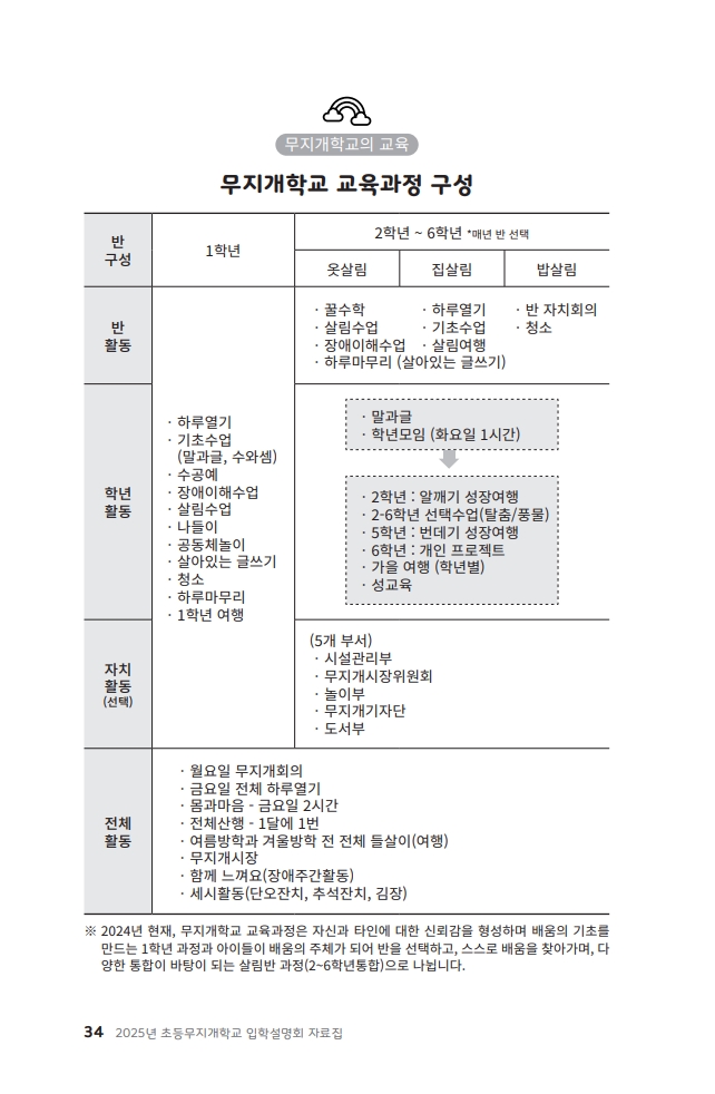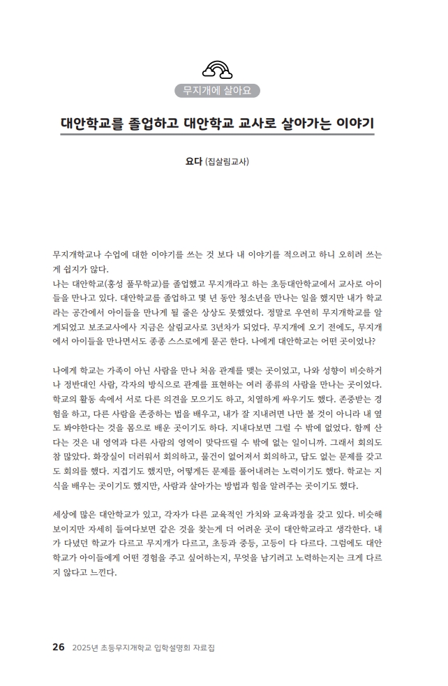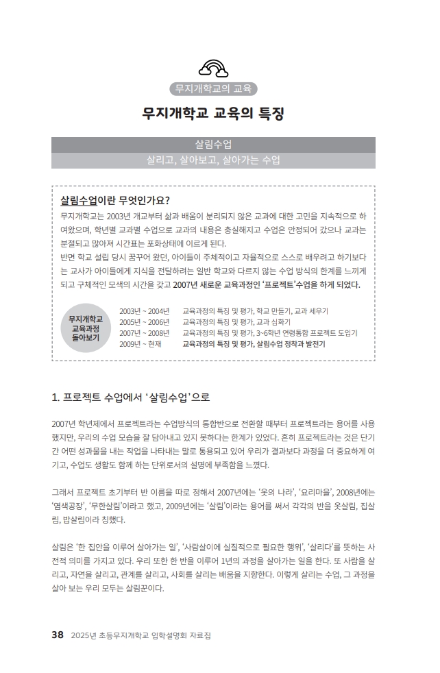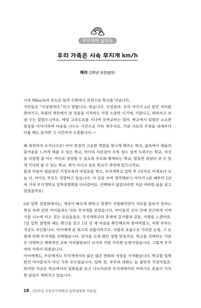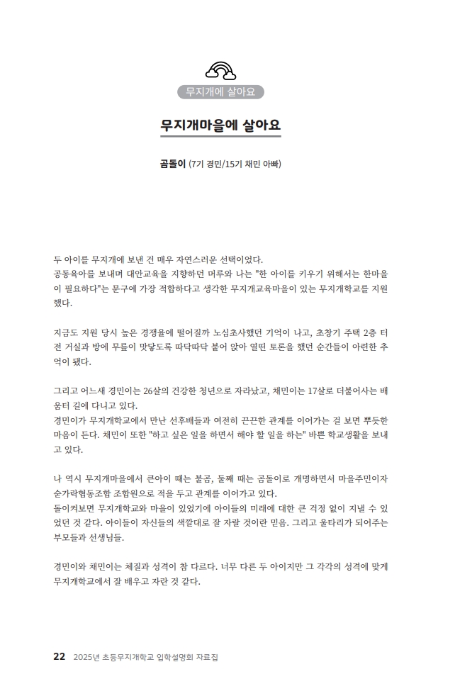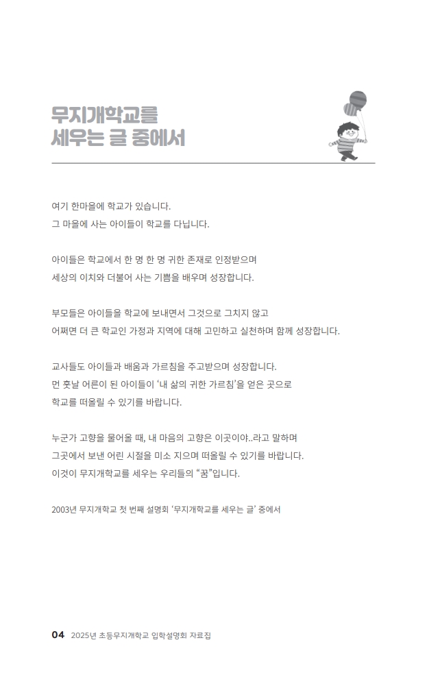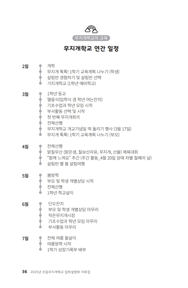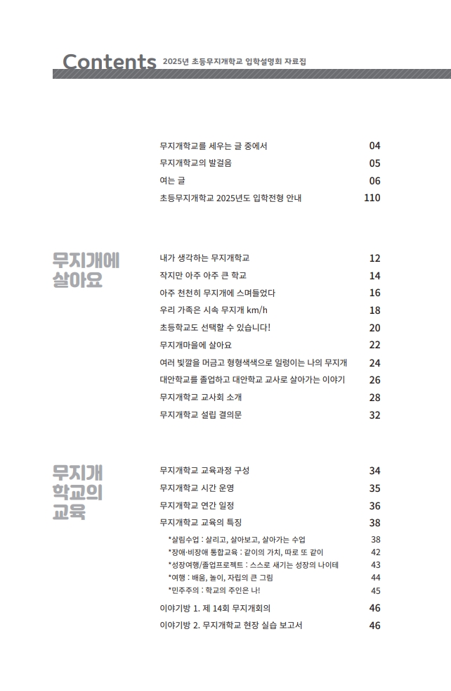 무지개학교의 역사와 철학, 교육과정 전반을 알 수 있는 설명회 자료집입니다.