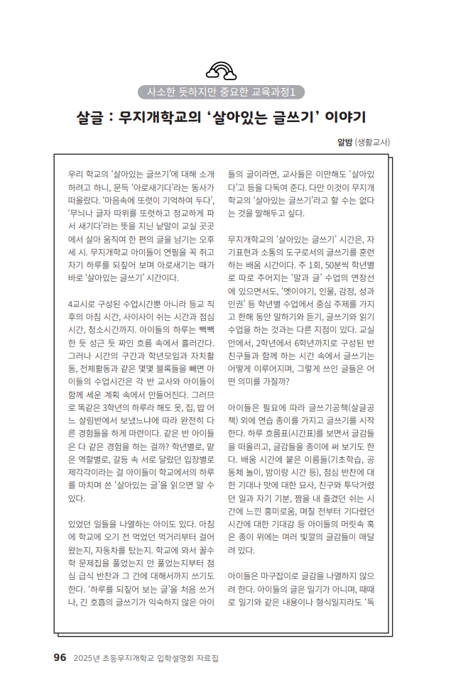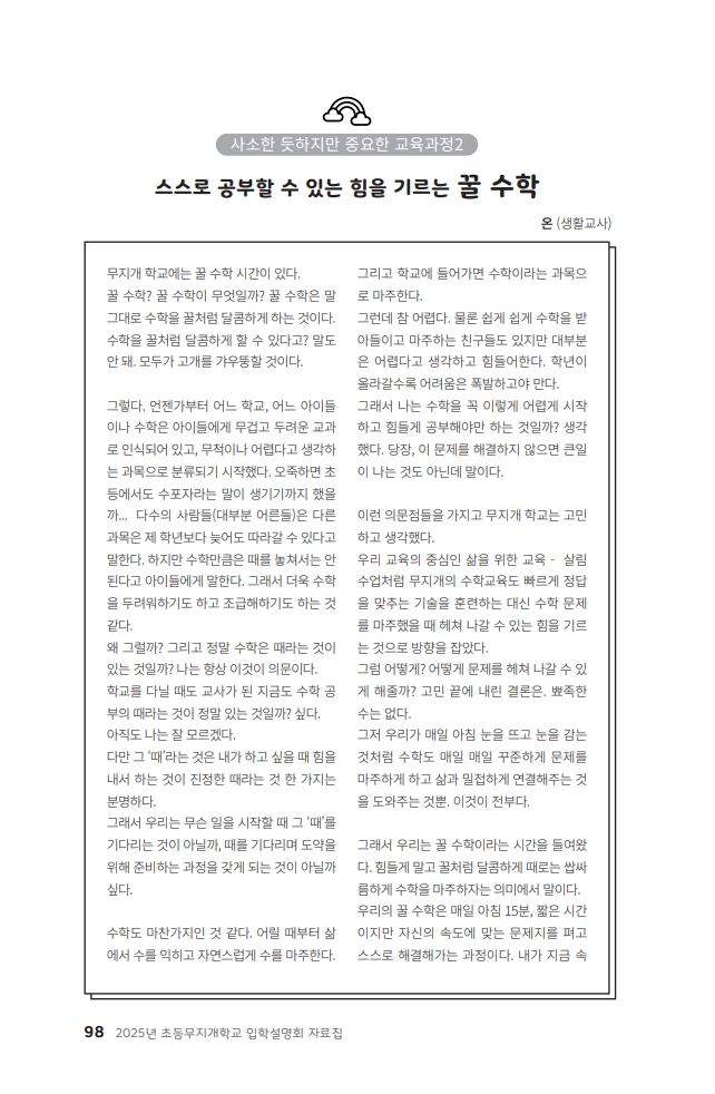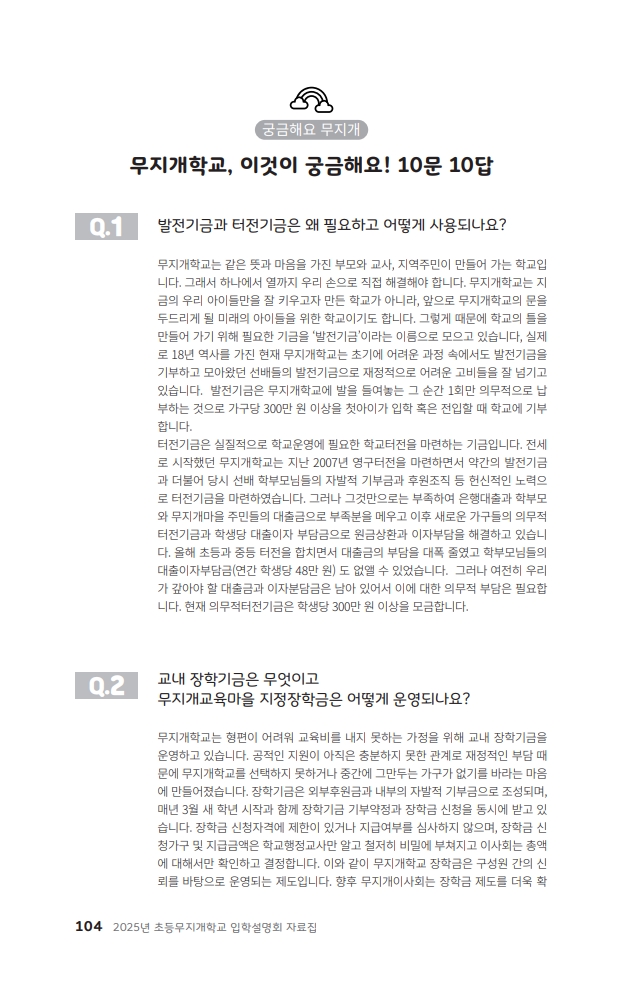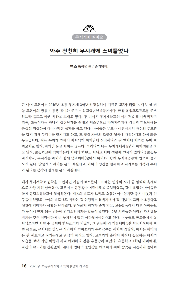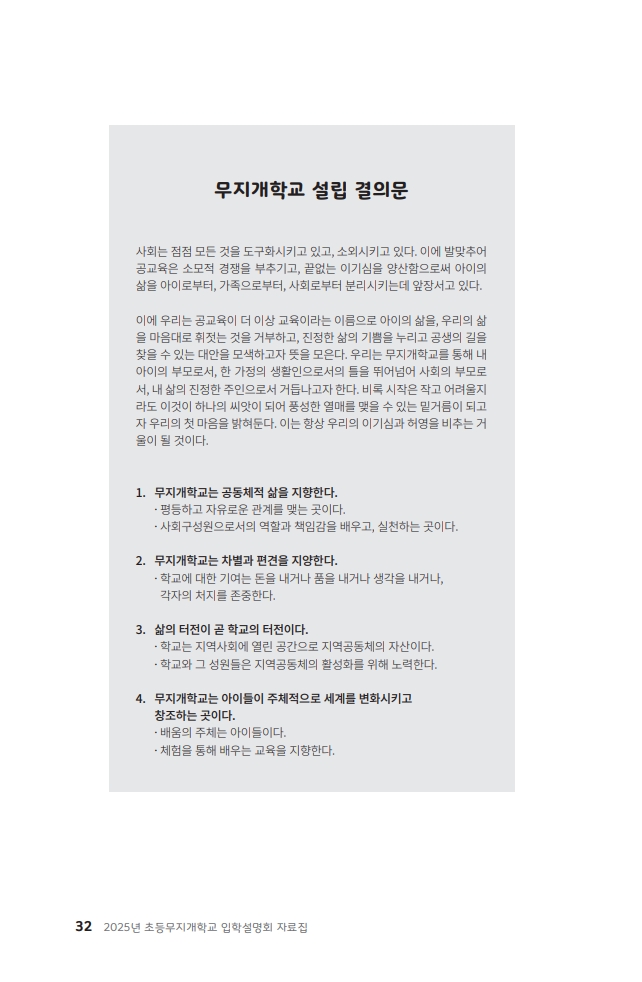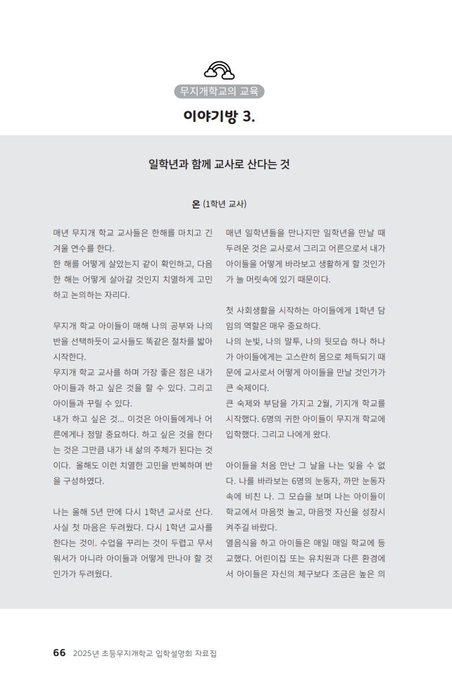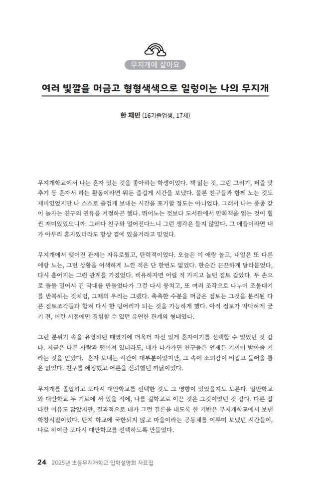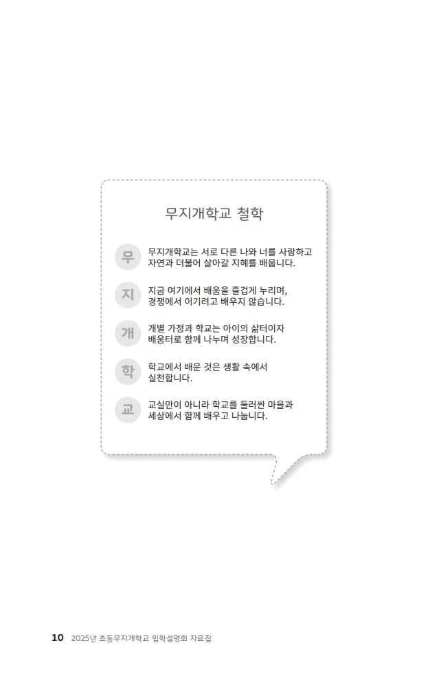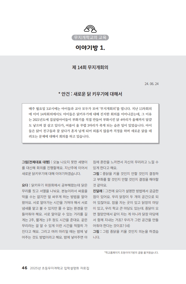 무지개학교의 역사와 철학, 교육과정 전반을 알 수 있는 설명회 자료집입니다.