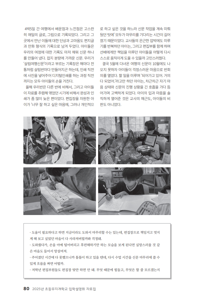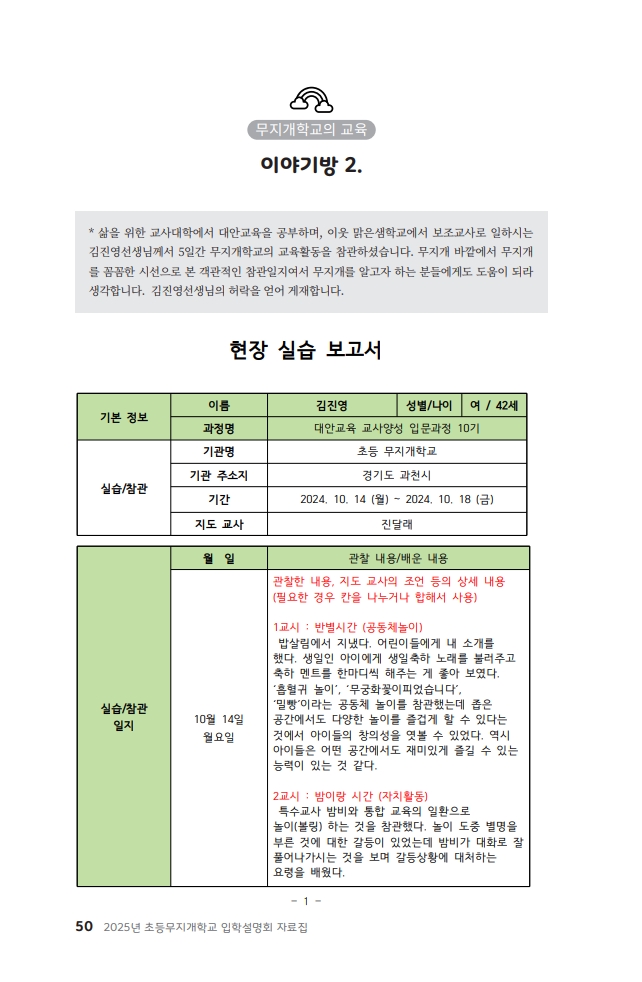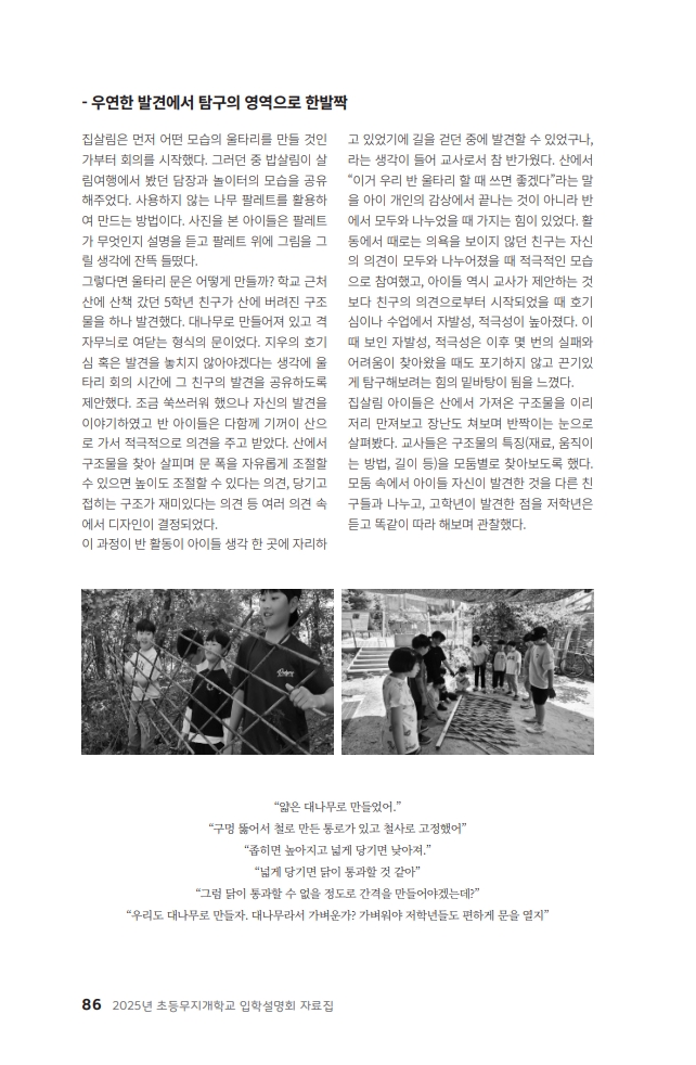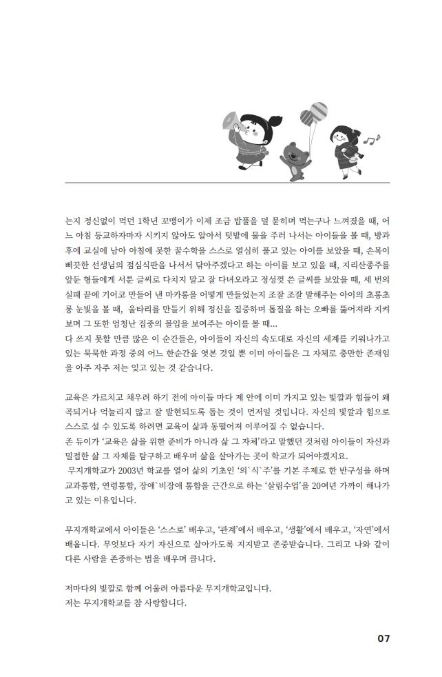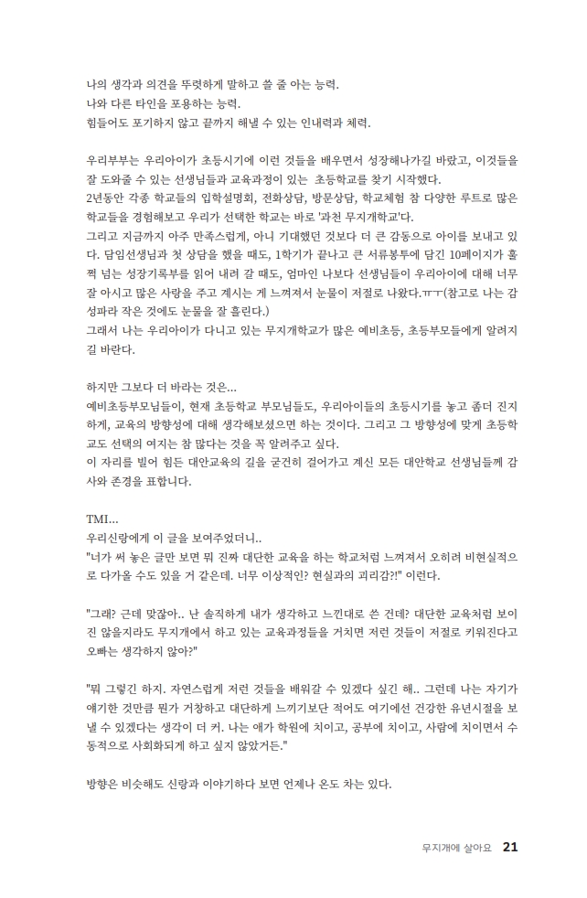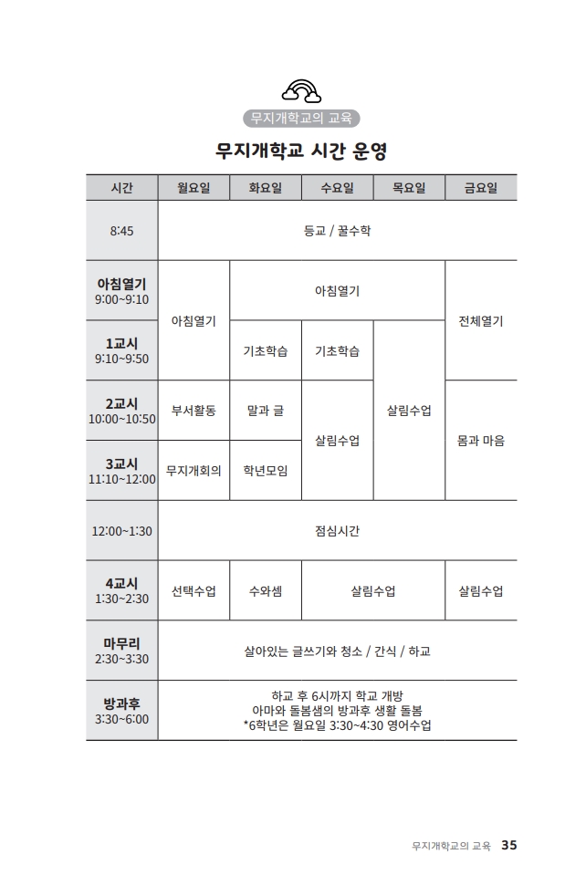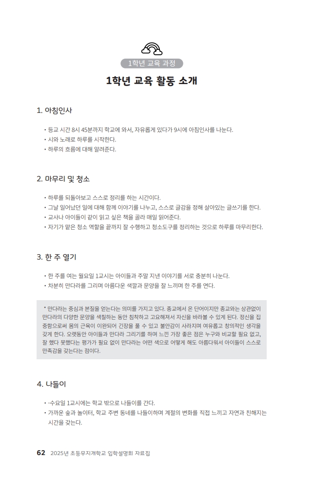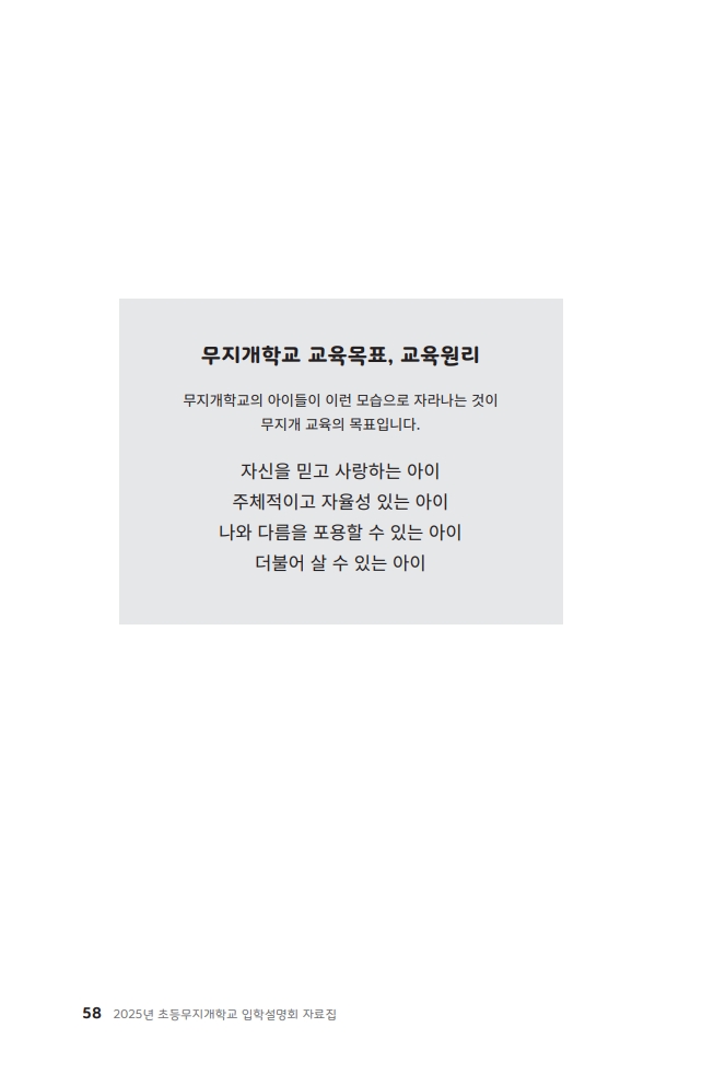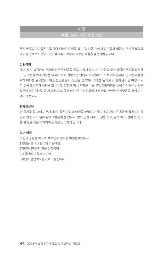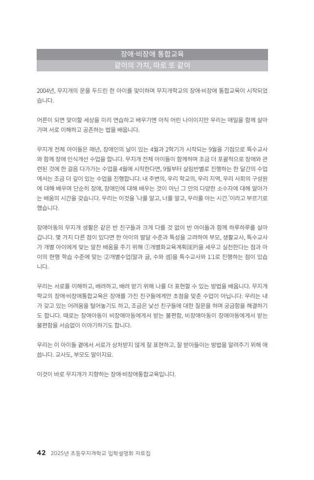 무지개학교의 역사와 철학, 교육과정 전반을 알 수 있는 설명회 자료집입니다.