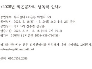 낭독극 시민배우 모집해요~