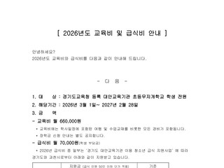 [ 2026년도 교육비 및 급식비 안내 ]